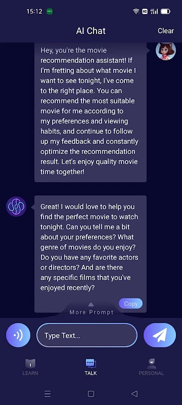 কথা বলার অনুশীলন ছাড়াও, GPT Talk 200 ChatGPT ক্যারেক্টার কমান্ডও অফার করে। আপনি উইন্ডোতে মনোনীত অক্ষরের সাথে চ্যাট করতে পারেন, যার ফলে উচ্চ মানের সামগ্রী পাওয়া যায়। এটি একটি সৃজনশীল লাইফস্টাইলকে সহজতর করে, যেমন একজন গান সুপারিশ সহকারী, চলচ্চিত্র সুপারিশ সহকারী, গল্পকার, পাঠ্য অ্যাডভেঞ্চার গেম, জীবন উত্সাহকারী, ব্যক্তিগত প্রশিক্ষক, মেকআপ শিল্পী, চাকরির ইন্টারভিউয়ার এবং আরও অনেক কিছু সহ। এই সহকারী ফাংশনগুলি কেবল শেখাকে আরও মজাদার করে না বরং আপনার কথোপকথনগুলিকে আরও রঙিন করে তোলে।