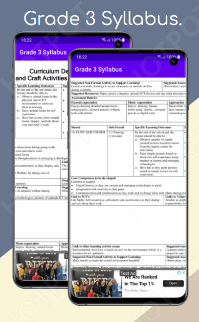 অ্যাপ্লিকেশনটি গ্রেড 3-এর জন্য সমস্ত সিবিসি সিলেবাস (পাঠ্যক্রম ডিজাইন) একত্রিত করে। গ্রেড 3 সিবিসি সিলেবাস মোবাইল অ্যাপ্লিকেশন শিক্ষকদের তাদের কাজের পরিকল্পনা করতে সাহায্য করে যখন তারা কাজের স্কিম এবং পাঠ পরিকল্পনার খসড়া তৈরি করে। এটি শিক্ষক এবং শিক্ষার্থীদের প্রাসঙ্গিক বিষয়বস্তুর সাথে লেগে থাকতে সাহায্য করে যা দক্ষতা ভিত্তিক পাঠ্যক্রম দ্বারা সমর্থন করা হচ্ছে।