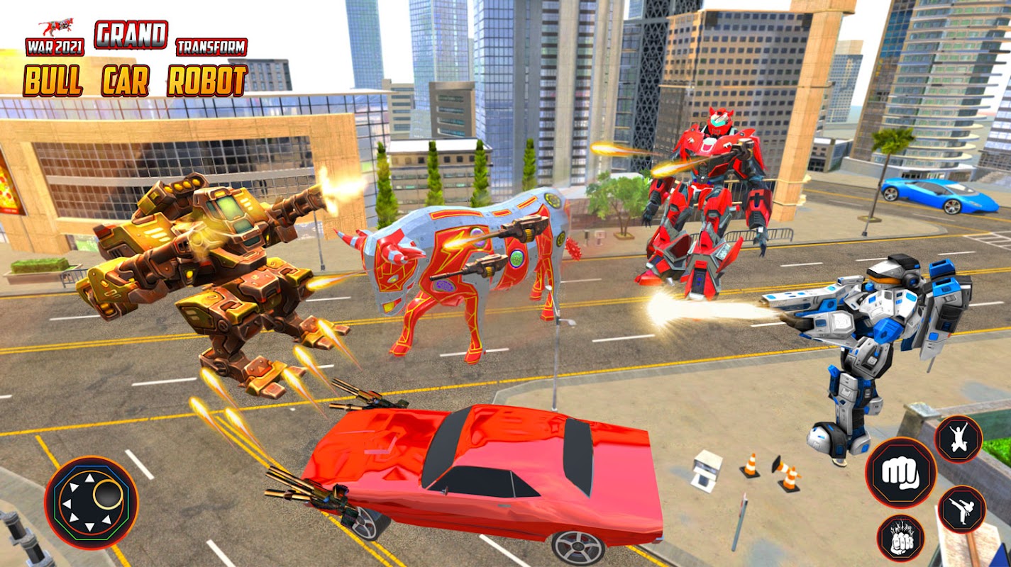 Your bull able to survive this robot battle with new insane bull attack and its main skill of angry bull robot transform so it can take revenge on robot bulls and other evil robots of future by help of grand robot and fight with the other enemies mech robot warriors. Its time to take revenge of real robot fighting and start robot war games by grand robot transforming games and killed shooting robot in robot fighting arena in the city of Grand Modern Miami. Fight with your bull fighting skills of shooting in transforming simulator and transform bullfighting within new robot bull games. You can control and drive cars and robot transformation in this new era of futuristic bull robot games and shooting rampage with new bull attack games.