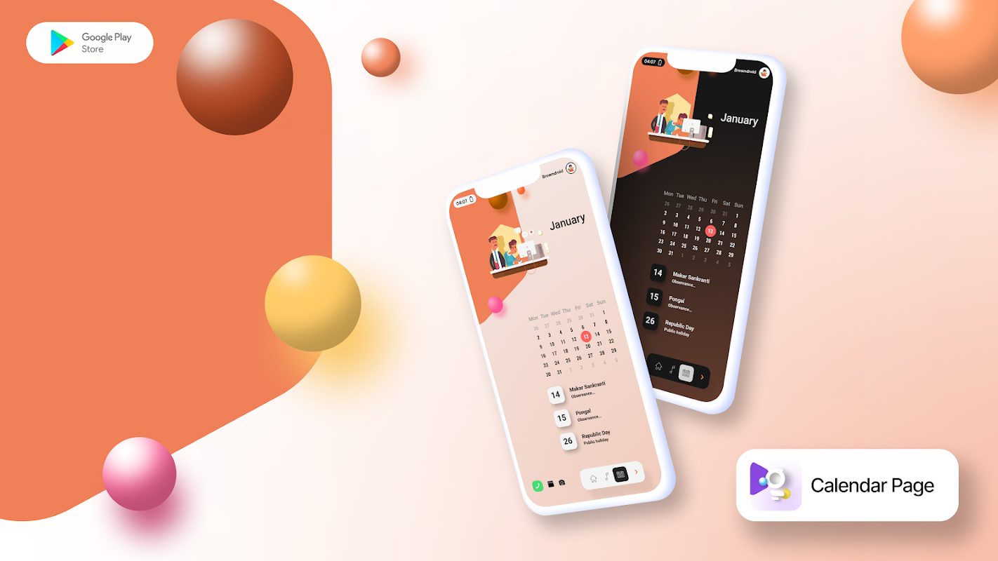 ➤ তৃতীয় পৃষ্ঠা কঠোর পরিশ্রমী অ্যানিমেটেড গ্রাফিক লোকের সাথে ক্যালেন্ডার এবং ইভেন্টগুলি দেখায়
