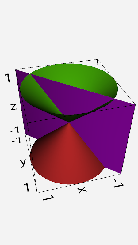 দুই এবং তিন মাত্রা উভয় গ্রাফ অন্তর্নিহিত সমীকরণ। উদাহরণস্বরূপ x² + y² = 5² বা 5x + 2y-3z = 15।