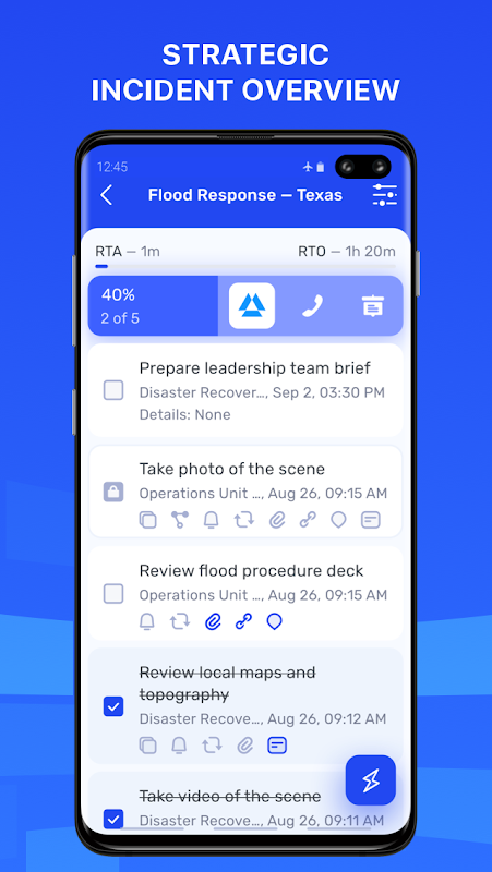 — GDL immediately pushes down procedures to response teams regardless of location, bandwidth, or device, synchronizing completed tasks in chronological order.