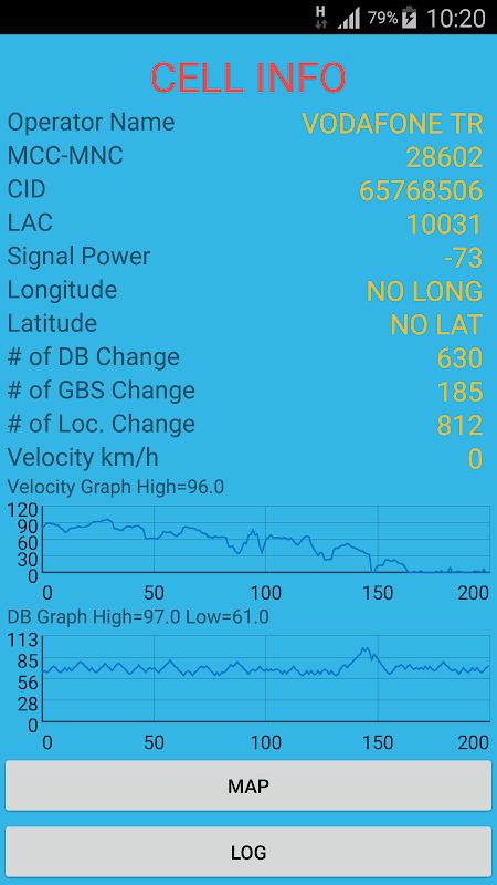App tracks the GBS which you are connected. And reports GBS Operator Name, MCC(Mobile Country Code), MNC(Mobile Network Code),CID(Cell ID),LAC(Location Area Code), Cell Signal Strength and Cell location.