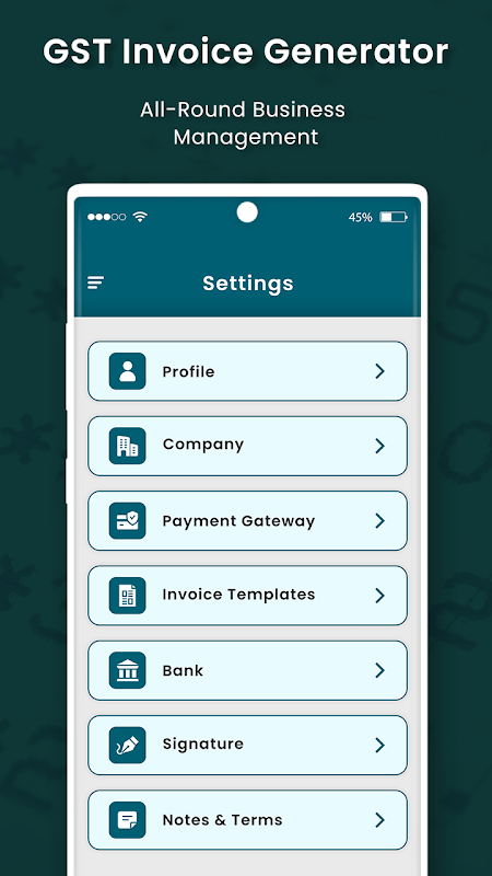 • আমাদের GST ইনভয়েস মেকার অ্যাপ থেকে সবকিছু পরিচালনা করুন।