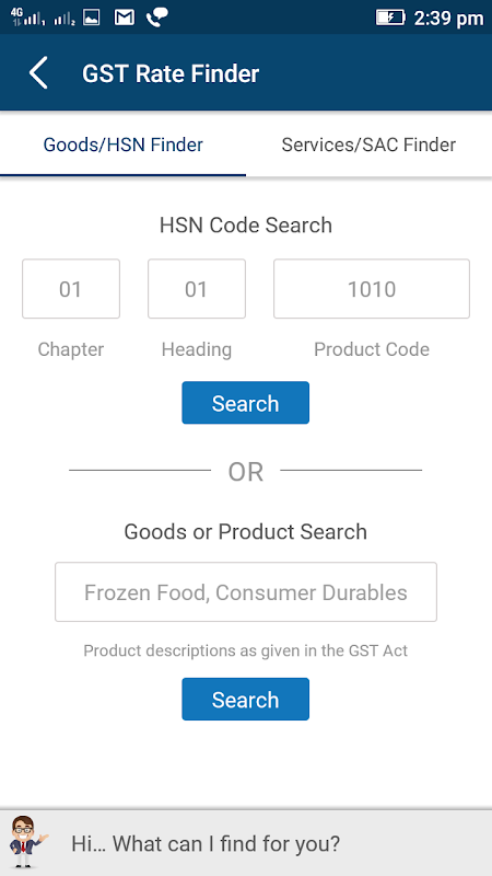• পণ্য ও পরিষেবাগুলি হার ফাইন্ডারে