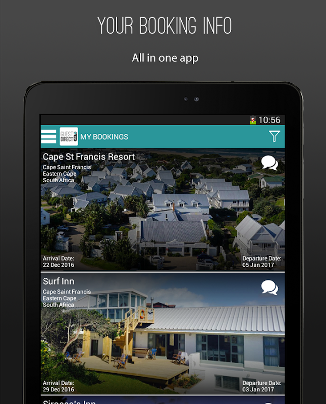 Guest.Direct is an app that allows you, the guest, to interact directly with hotels. All your bookings, chats and hotel information packaged in one neat app.