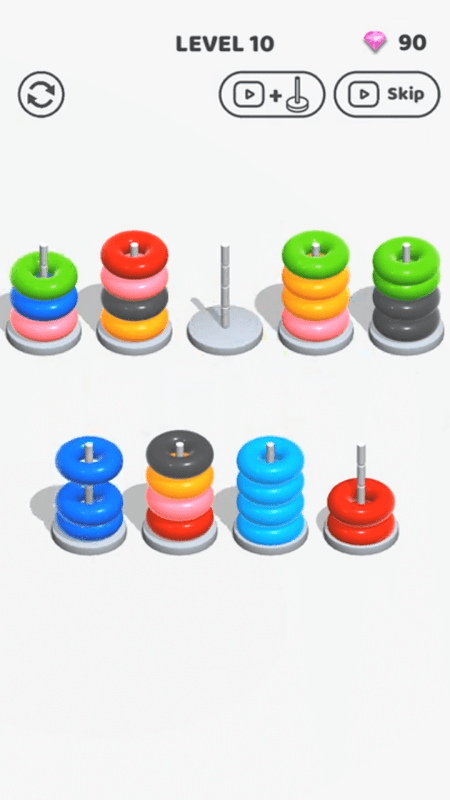 Color Hoop Stack - Sort Puzzle is a classic puzzle game on arcade. It's likewise a way to deliberately immerse yourself. You need the colors of the hoops sorted. And every hoop can only move to the same colored hoop, different colors can not switch. You can go through it until all the colors are on their shelves.