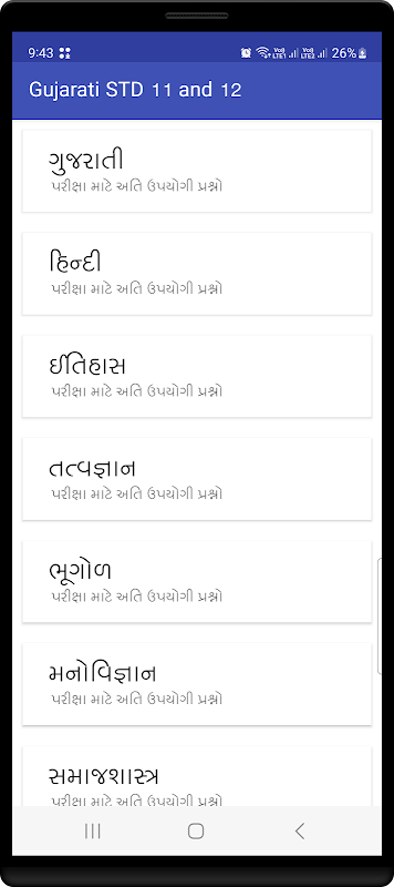 গুজরাটি এসটিডি 11 এবং 12 অ্যাপটিতে গুজরাট রাজ্য শিক্ষা বোর্ড-জিএসইবি-র সর্বশেষ পাঠ্যক্রম অনুসারে প্রশ্ন অন্তর্ভুক্ত রয়েছে।