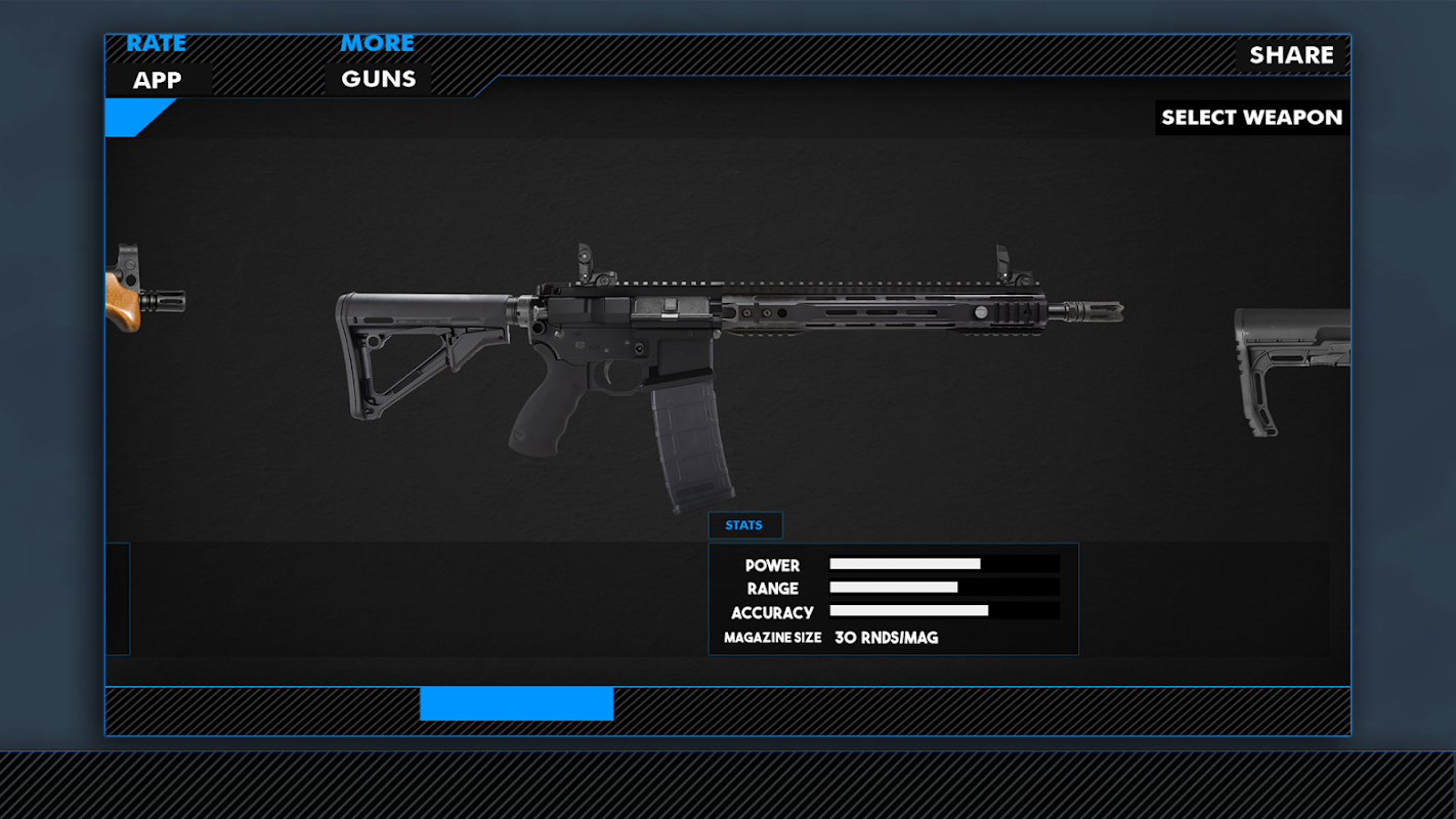 This is not toy gun builder it’s a real gun builder with real gun parts that existing! With high-resolution graphic you can zoom gun and see the details. Whatever you choose in build options will be saved on your device so you do not have to worry about saving. In the options you can choose how to shoot with your gun, select slow or normal motion, chose unlimited ammo or the normal number of bullets within magazine. It’s the same for vibrations, smoke effects and screen rotation. Share with other people this simulator game, show to them virtual guns on your phone and have great time with best gun app.