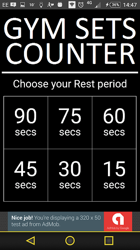 15 থেকে বিশ্রাম সময়কাল, 30, 45, 60, 75 এবং 90 সেকেন্ড চয়ন করুন
