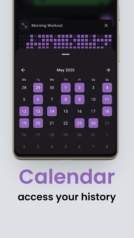 ক্যালেন্ডারটি অতীতের সমাপ্তিগুলি পরিচালনা করার একটি দ্রুত এবং সহজ উপায় প্রদান করে। একটি সমাপ্তি অপসারণ বা যোগ করতে কেবল একটি দিনে ট্যাপ করুন।