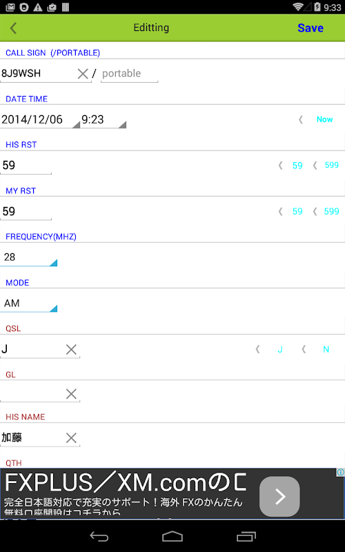 アマチュア無線用業務日誌アプリです。