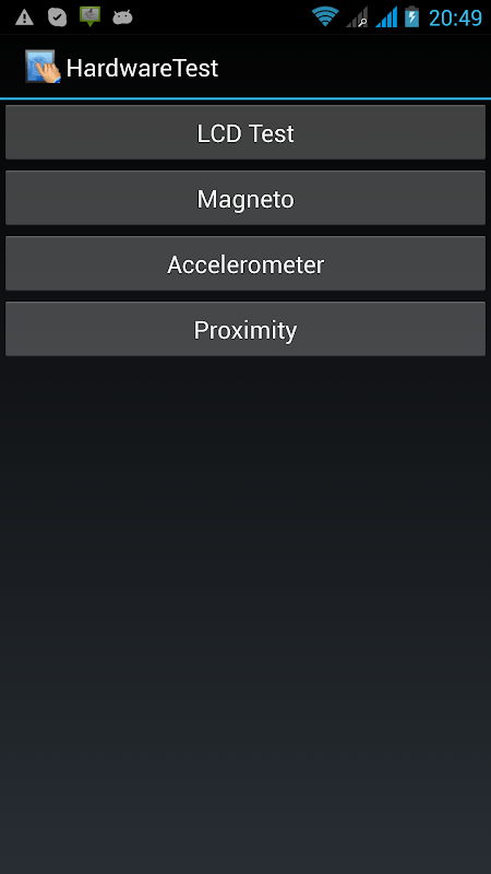 আপনার LCD প্রদর্শন, চৌম্বক, অ্যাক্সেলেরোমিটার, প্রক্সিমিটি এবং লাইট সেন্সর পরীক্ষা করার জন্য এই অ্যাপ্লিকেশন ব্যবহার করুন.