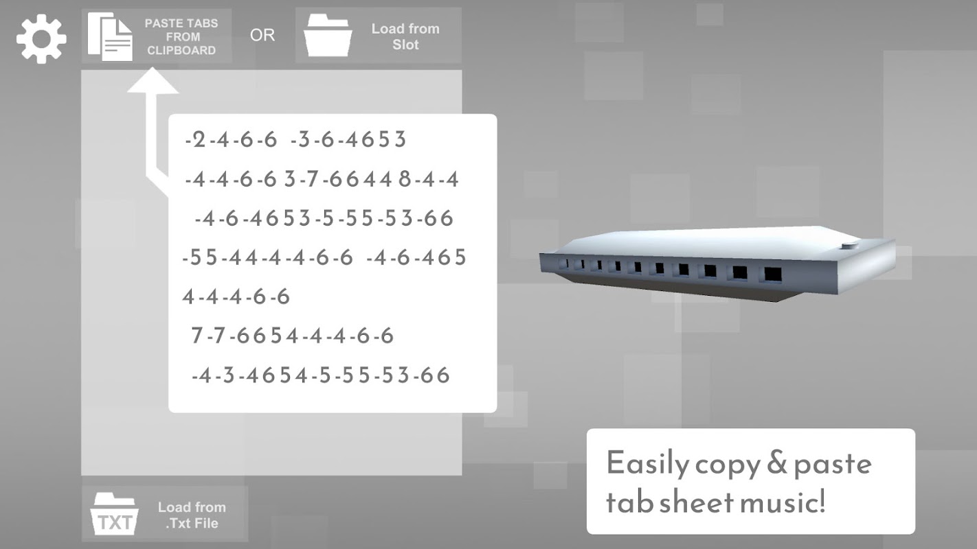 ওয়েবসাইট থেকে হারমোনিকা ট্যাব শীট সঙ্গীত পেস্ট করুন এবং চাক্ষুষভাবে প্রশিক্ষণ দিন।