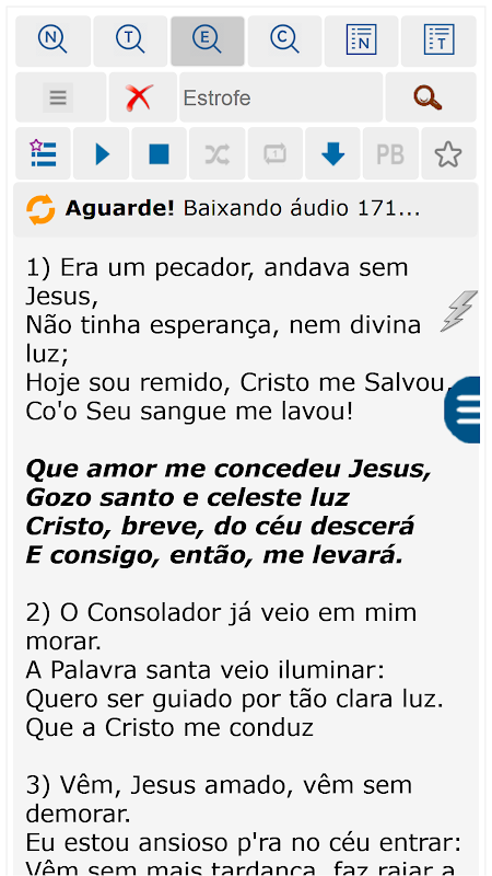 - অডিও ডাউনলোড সিস্টেম সঠিকভাবে কাজ করছে। - অ্যাপ্লিকেশানগুলিতে স্তবক অন্তর্ভুক্ত, সংখ্যা, শিরোনাম, কোরাস এবং শ্লোক দ্বারা অনুসন্ধান সিস্টেমটি পুরোপুরি কাজ করে।