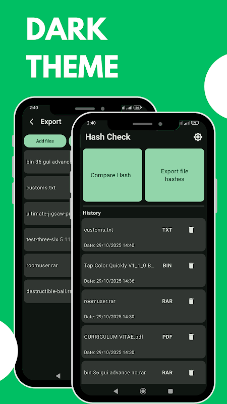 - সরাসরি তুলনা: প্রত্যাশিত হ্যাশ পেস্ট বা টাইপ করুন এবং অ্যাপটি আপনাকে বলে যে এটি মেলে কিনা।