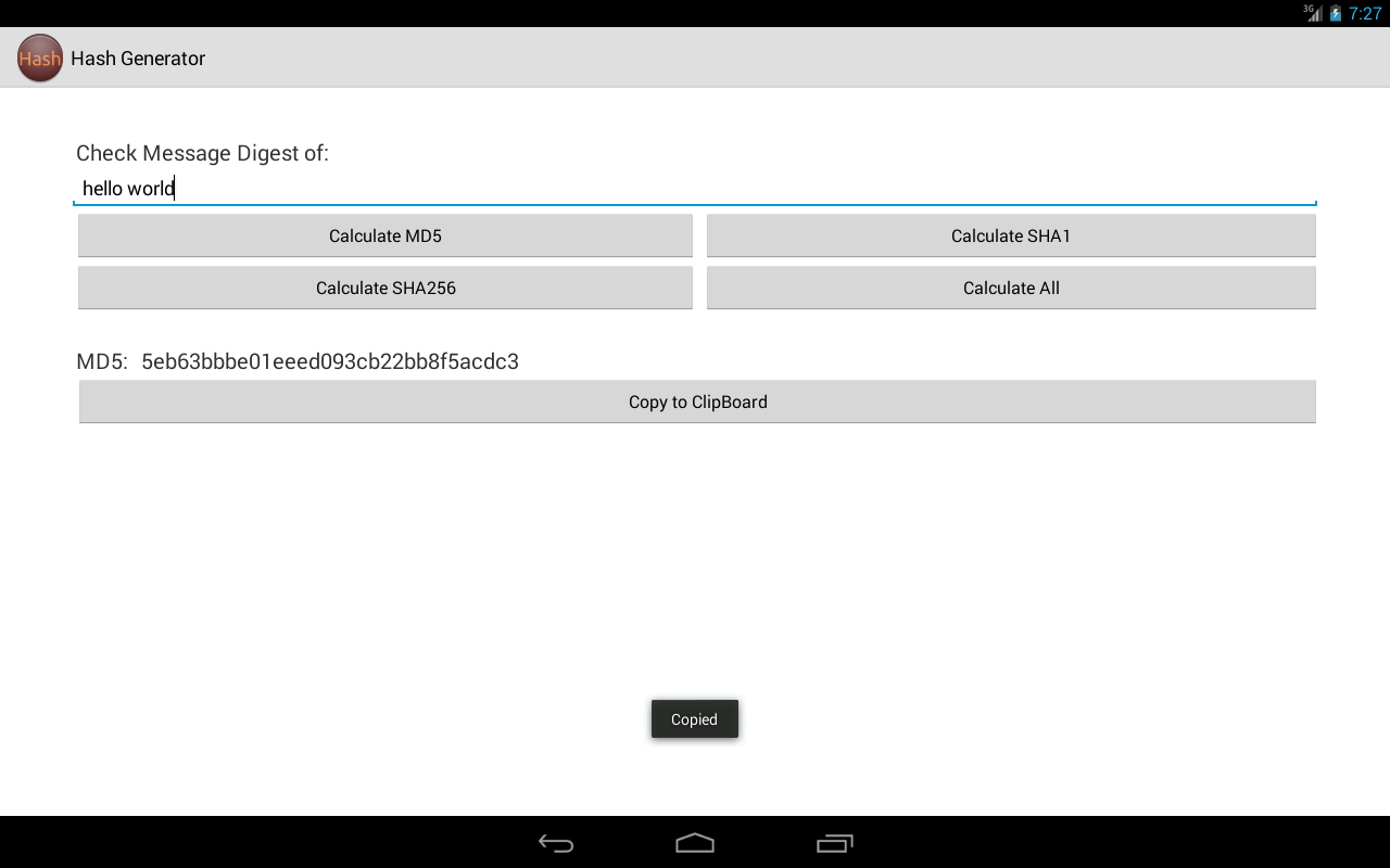 Find the hash value of a string and copy it to the clipboard.