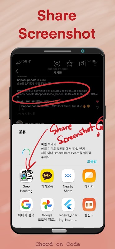 #1. 스샷을 찍고 "Grep Hashtag"로 이미지를 공유하면 텍스트로 저장이 돼요.