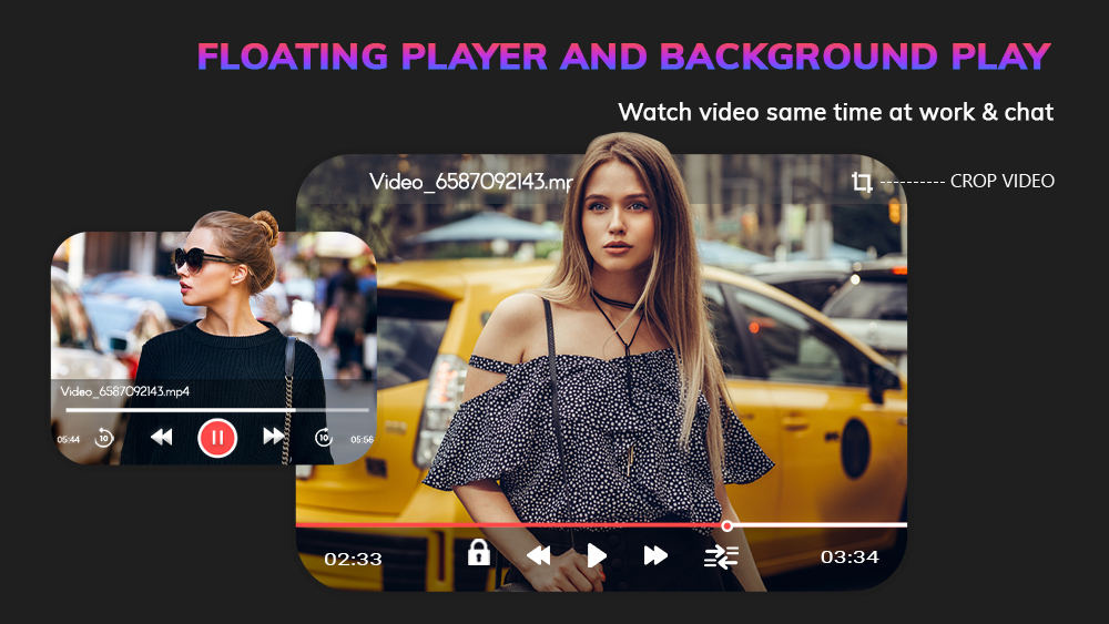 SX HD Video Player supports to watch your videos in full screen or use the floating pop-up for multitasking. HD Video Player defaults the best size of the screen for you to enjoy the floating pop-up window. You could move the floating pop-up window through HD Video Player wherever you want on the screen.