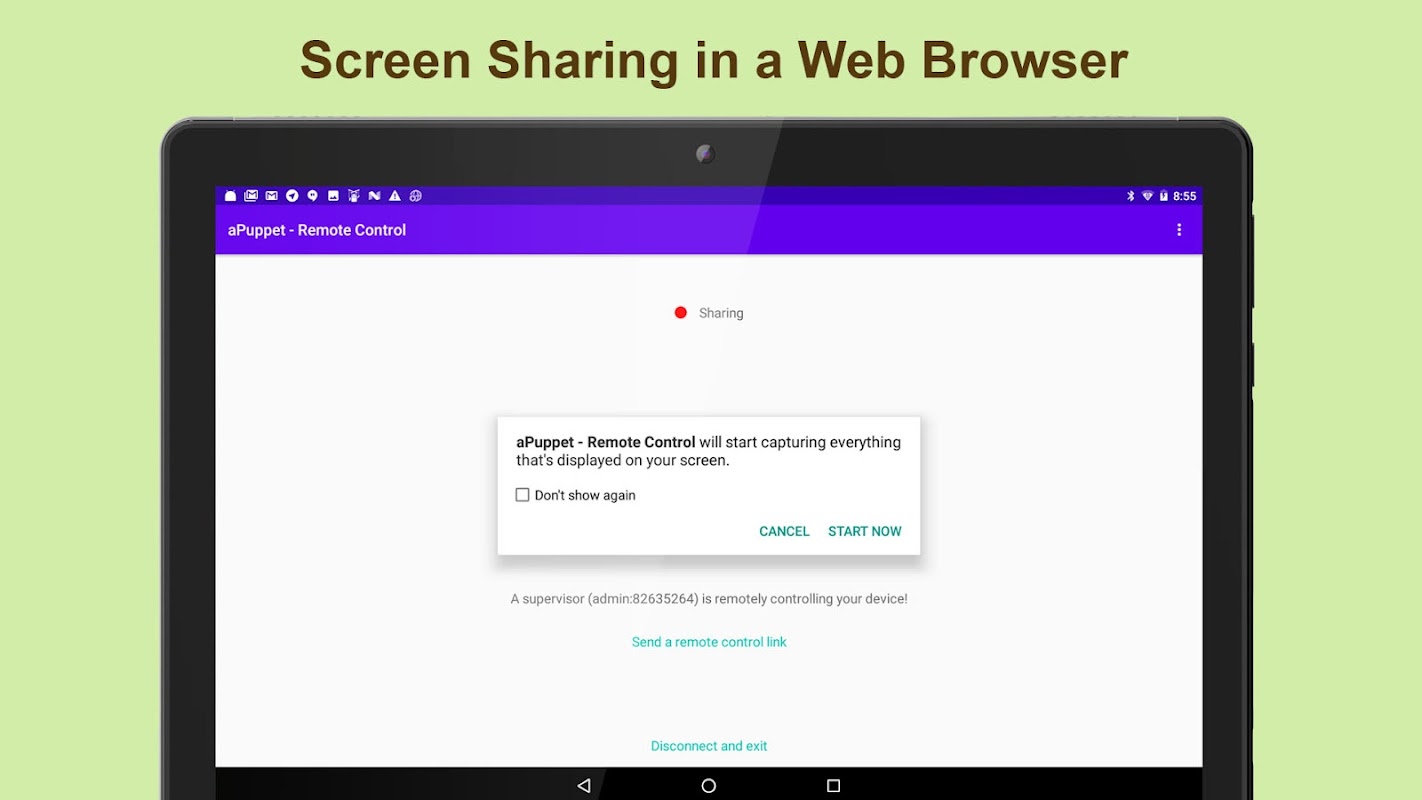 আপনার ডিভাইসের স্ক্রীন শেয়ার করতে এবং অঙ্গভঙ্গি সম্পাদন করতে, কোনো তৃতীয় পক্ষের সফ্টওয়্যারের প্রয়োজন নেই। আপনার অ্যান্ড্রয়েড ডিভাইসটি যেকোন ব্রাউজারে কাজ করা একটি ওয়েব অ্যাপ্লিকেশনে দূরবর্তীভাবে নিয়ন্ত্রিত হয় (ক্রোম একটি পছন্দনীয়)। ডিভাইসের স্ক্রিনটি দ্রুত এবং নিরাপদ উপায়ে একজন প্রযুক্তিবিদকে মিরর করা হয়।