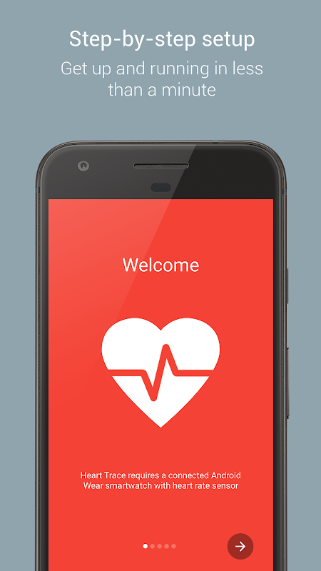 হার্ট ট্রেস স্বয়ংক্রিয়ভাবে আপনার অ্যান্ড্রয়েড ওয়েয়ার স্মার্টওয়াচের মাধ্যমে নিয়মিত বিরতিতে আপনার হার্ট রেট চেক করে এবং গুগল ফিটের সাথে হার্ট রেট ডেটা সিঙ্ক করে। আপনি দিন, ঘন্টা বা মিনিট বা দৈনিক সারাংশ হিসাবে আপনার হার্ট রেট দেখতে পারেন।