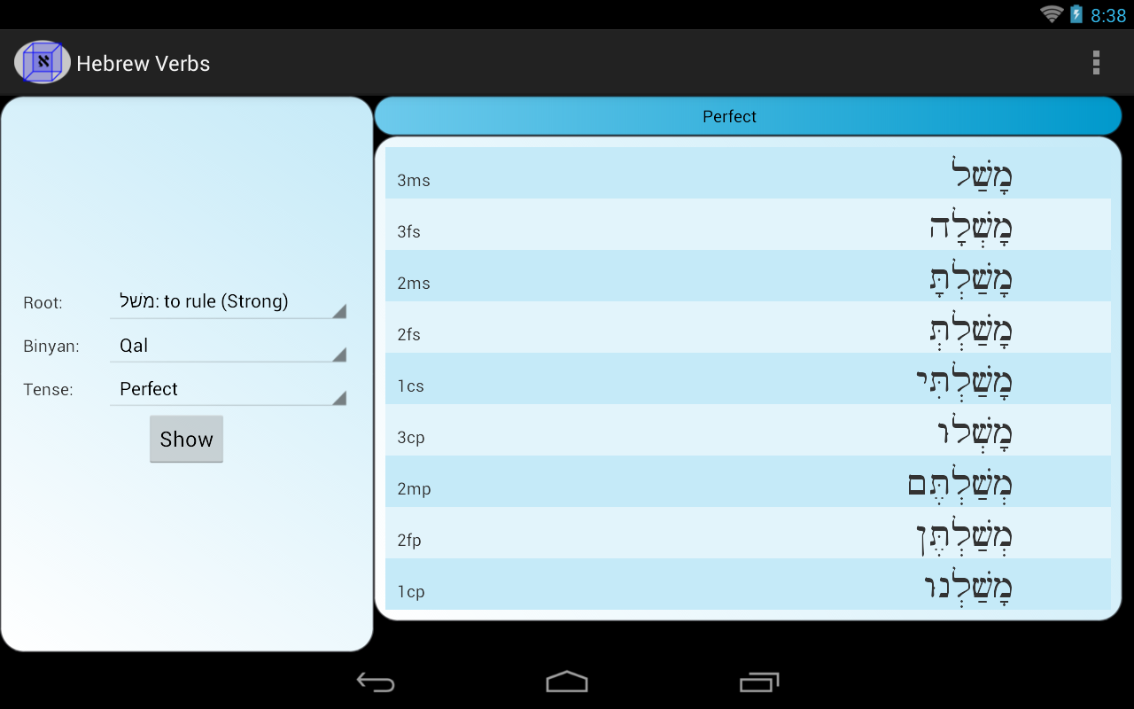উদাহরণ হিসাবে নির্বাচিত শিকড় ব্যবহার হিব্রু ক্রিয়া conjugations প্রদর্শন করা হয়.