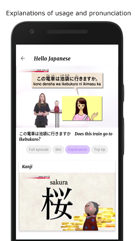 Audio অডিও পাঠের মাধ্যমে সহজেই জাপানিদের শিখুন। এই বৈশিষ্ট্যের জন্য একটি ইন্টারনেট সংযোগ প্রয়োজন তবে আপনি জাপানি যোগাযোগ আরও শিখতে পারেন।