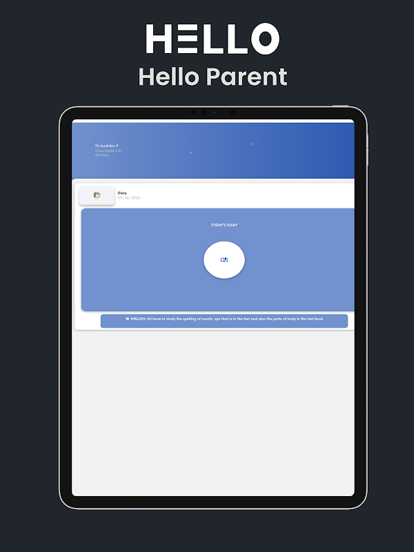 হ্যালো প্যারেন্ট হল একটি সর্বজনীন স্কুল যোগাযোগ অ্যাপ যা পিতামাতা, শিক্ষক এবং প্রতিষ্ঠানের জন্য আপডেট, ব্যস্ততা এবং সহযোগিতাকে সহজ করার জন্য ডিজাইন করা হয়েছে।