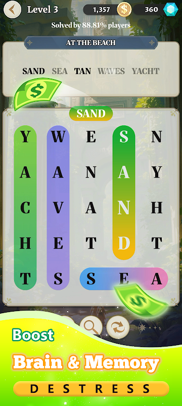 উদ্ভাবনী শব্দ গেমপ্লে: লক্ষ্য শব্দগুলি আবিষ্কার করতে এবং অতিরিক্ত চমকের জন্য লুকানো শব্দগুলি আনলক করতে অবাধে অক্ষরগুলি সংযুক্ত করুন!