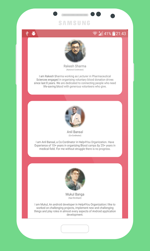 Help4You অভাবীদের জন্য সাহায্য করার জন্য কাজ করে বিশেষত স্বেচ্ছাসেবী রক্ত দানের মধ্য দিয়ে এক জীবন বাঁচাতে, একটি নীতিবাক্য সঙ্গে প্রান্তিককৃত, "রক্তদান ... সংরক্ষণ বসবাস" রক্তের প্রয়োজন মেটান. এটা সেই মায়েদের যারা রক্ত প্রয়োজন যখন তিনি যারা জীবন দিতে জন্য একটি baby.Give রক্ত প্রসব জন্য রক্তের নিশ্চিত প্রাপ্যতা নির্মিত হয়.