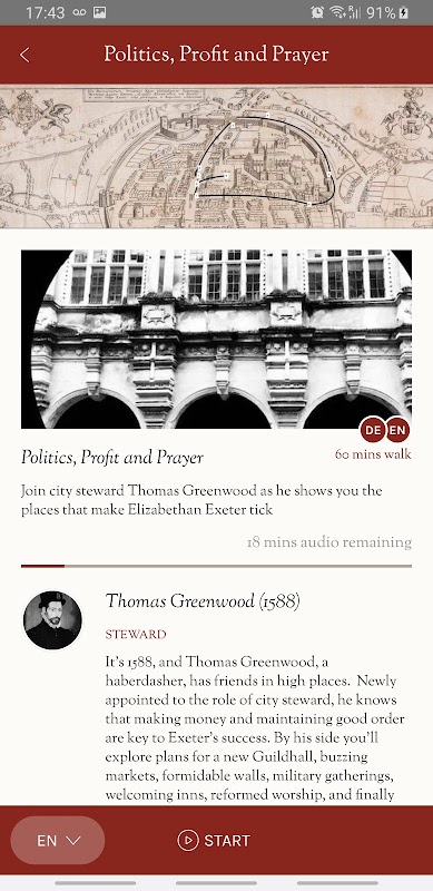 সাইটে আপনি শহর জুড়ে যাওয়ার সাথে সাথে জিপিএস দিয়ে গল্পগুলি ট্রিগার করেন - বা পিছনে বসে গল্পের পয়েন্টগুলিতে আলতো চাপ দিয়ে আপনার আঙ্গুলগুলিকে হাঁটাচলা করতে দিন।