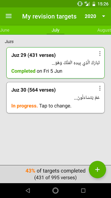 • আপনি মুখস্থ করেছেন এমন সূরা, জুজ এবং হিযব কতবার সংশোধন করছেন তা দেখুন।