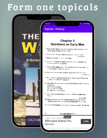ইতিহাস: টপিকাল প্রশ্নোত্তরগুলি এমন একটি অ্যাপ্লিকেশন যা ভৌগলিক বিষয়কে টপিক, প্রশ্ন এবং চিহ্নিতকরণের প্রকল্পগুলি প্রথম থেকে শুরু করে ফর্ম 4 পর্যন্ত সংগ্রহ করে the অ্যাপ্লিকেশনটির বিষয়বস্তু পরীক্ষার্থীদের আরও দক্ষতার সাথে প্রশিক্ষণের জন্য প্রাসঙ্গিক দক্ষতার সাথে সজ্জিত করা হয়েছে যাতে আরও কেসিএসই। অ্যাপ্লিকেশনটিতে নিম্নলিখিত বিষয়গুলির বৈশিষ্ট্য রয়েছে: