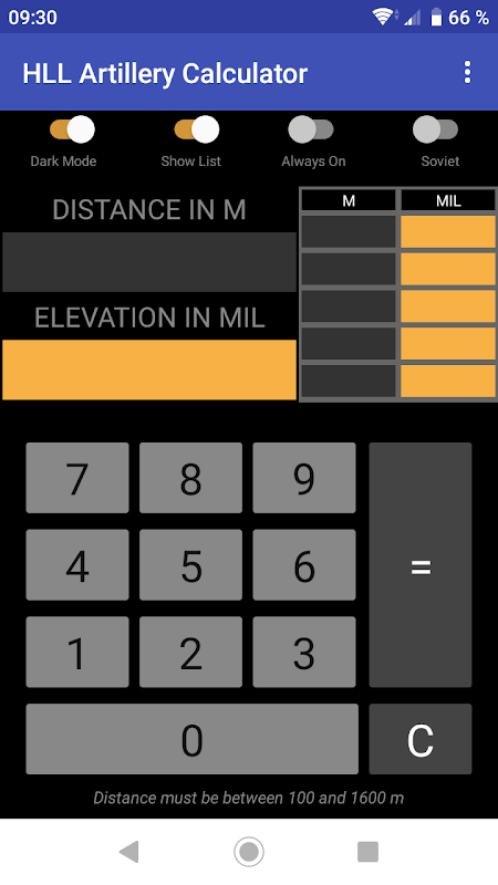 নরকের জন্য আর্টিলারি ক্যালকুলেটর দূরত্বকে উচ্চতায় রূপান্তর করতে দিন