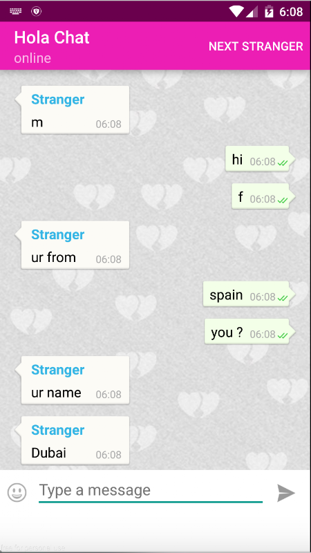 Hola Chat allows you to chat, befriend and meet new people all around the globe. It connects you automatically with a complete stranger. People around the world trade advice, share real thoughts and make new friends. Thousands of people around the world are waiting to be friends.