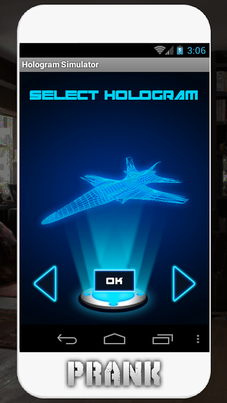 Hologram Screen Joke Simulator - a screen simulator in the form of a hologram as a joke! See how the screen could look like in the future on the hologram. Hologram 3D Simulator | prank app is a funny and simulated application which gives you the most realistic simulation of the hologram in your device. It combines the realistic holograms images and the background from your back camera and then come out a wonderful composite picture.