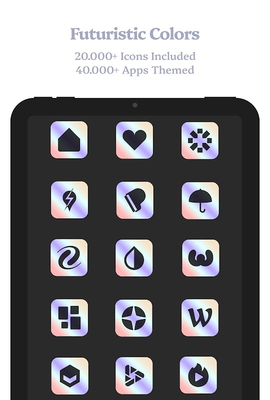 আইকন ডিজাইন যা আপনার হোমস্ক্রীনের জন্য হলোগ্রাফিক এবং ইরিডিসেন্ট শৈলীকে একত্রিত করে!