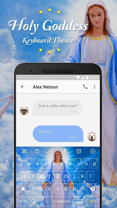 Decorate your keyboard with Holy Goddess Emoji Keyboard Theme. It offers wonderful typing experience and personalized enjoyment!