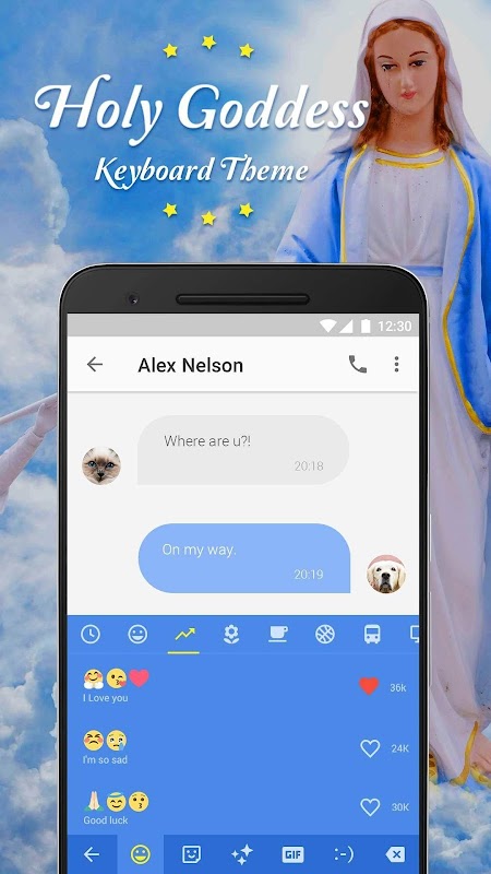 This Holy Goddess Emoji Keyboard Theme is a plugin app, please download the main app Facemoji Keyboard + GIFS for Holy Goddess Emoji Keyboard Theme to run.