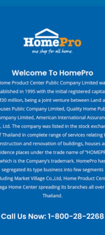 Co. ,Ltd. The company was listed in the stock exchange of Thailand in complete range of services relating to construction and renovation of buildings, houses and residence places under the trade name of 'HOMEPRO' which is the Company's trademark.