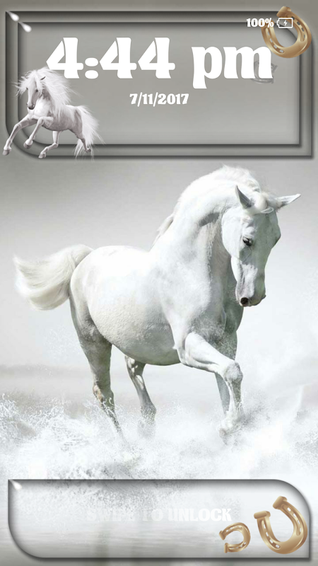 Ready for horse adventure? Ready steady bang! Download Horse Pattern Lock Screen for free and take adorable "lock screen" photos! Have you ever dreamed of having your own pet horse? Join princess horse club and lock your horse in your phone! Stunning pics of horses, majestic black stallion with a flowing mane and tail, or golden palomino mare with a perfect blaze will change your old "locker screen app" in a beautiful manner! Whenever you slide to unlock screen, you will be pleasantly surprised by the beauty of "horse backgrounds" with pattern slide effect. Bring the gracious nature on your mobile lock screen! This cute animals lock screen HD with running horses, jumping horses, galloping horses pictures will win your heart! Set "horse lock screen pattern with picture” of horses and forget about horses zipper lock screen. The horse world is one free download away from you! Be a part of animal kingdom with this cute “lock screen pattern design”! Listen to the wonderful “horse sounds” whenever you lock and unlock your new pattern screen lock wallpapers!