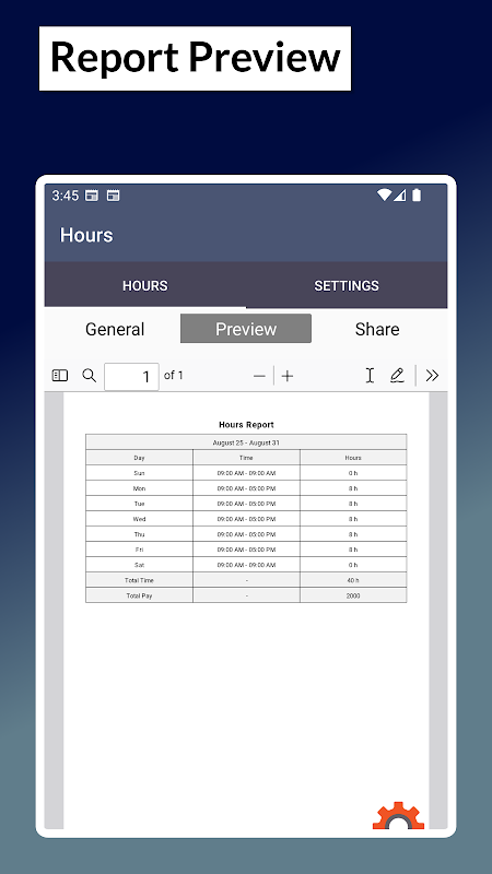 পিডিএফ রিপোর্ট: পেশাদার পিডিএফ রিপোর্ট তৈরি করুন যা শুরু এবং শেষের সময় সহ আপনার সাপ্তাহিক কাজের সময় বিশদ করে। এই রিপোর্টগুলি ক্লায়েন্ট, নিয়োগকর্তাদের সাথে শেয়ার করার জন্য বা আপনার ব্যক্তিগত রেকর্ডের জন্য উপযুক্ত।