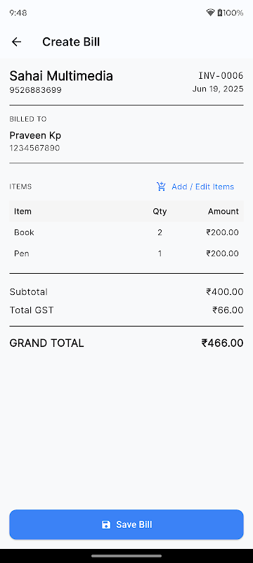 HoverBill ভারতে ছোট এবং মাঝারি আকারের ব্যবসাগুলিকে অনায়াসে, এমনকি অফলাইনেও চালান তৈরি এবং ভাগ করতে সহায়তা করে।