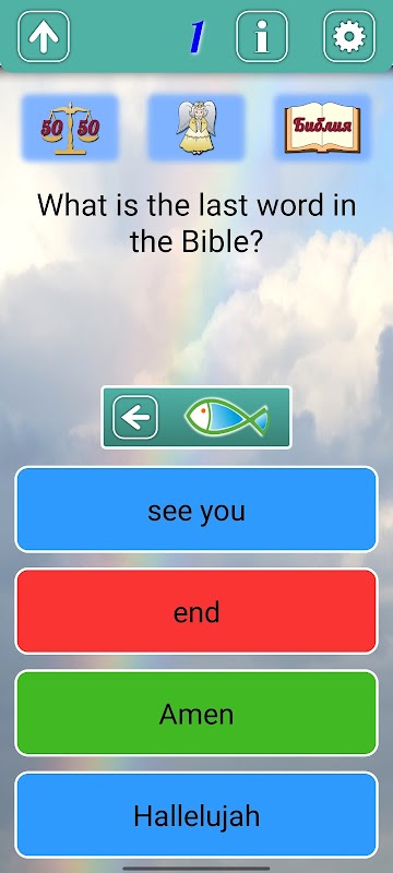প্রশ্নের সংখ্যা: 300 (প্রশ্ন এবং সঠিক উত্তর বাইবেল থেকে নেওয়া), 20টি মিনি গেম এবং 20টি সুন্দর ছবি আপনার জন্য বাইবেলের প্রতিশ্রুতি সহ। এখানে 4 টি ইঙ্গিত রয়েছে (তিনটি প্রধান এবং একটি অতিরিক্ত)।