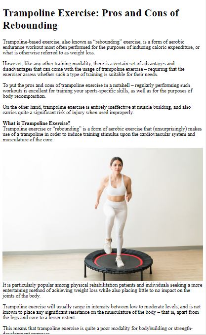 কিন্তু এখানেই শেষ নয়! ট্রামপোলিন নিরাপত্তা, সুবিধা এবং অগ্রগতি সম্পর্কে আমাদের অন্তর্দৃষ্টিপূর্ণ নিবন্ধগুলির সাথে আপনার জ্ঞান প্রসারিত করুন। অভিজ্ঞ প্রশিক্ষকদের কাছ থেকে শিখুন, আপনার প্রশিক্ষণের রুটিন অপ্টিমাইজ করার জন্য মূল্যবান অন্তর্দৃষ্টি অর্জন করুন এবং ট্রামপোলিন ওয়ার্কআউটের রোমাঞ্চ উপভোগ করুন।