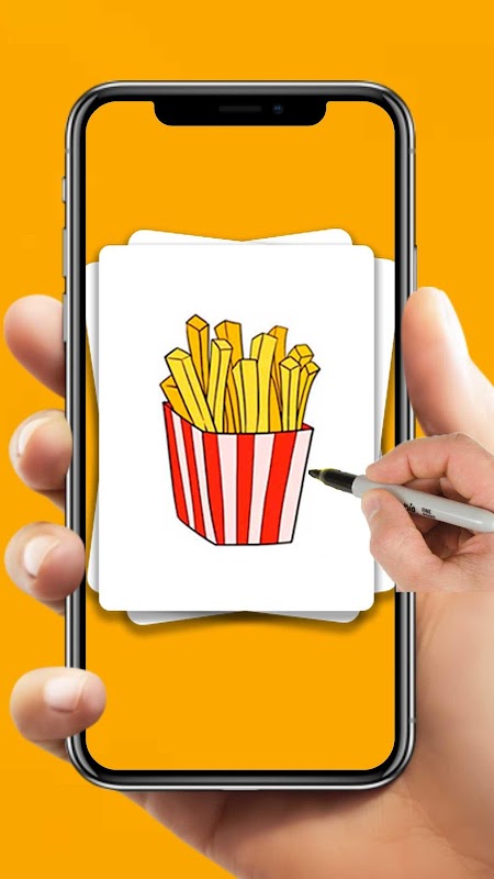 The app How to draw cute food step by step will show you how to draw food, how to draw cute cute sweet drink, how to draw fast food, how to draw sweet foods, how to draw kawaii step by step and other cute things.
