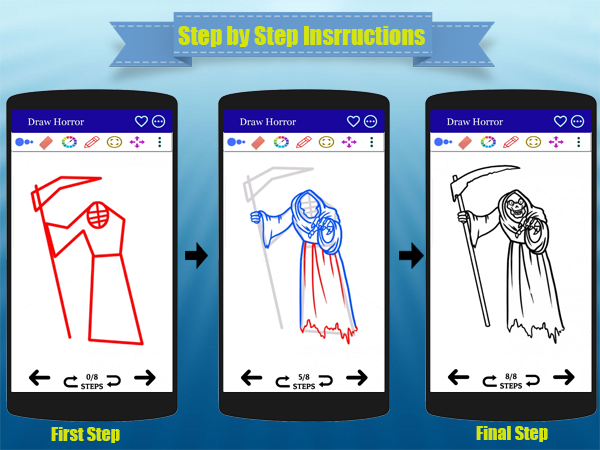 ভীতিজনক হরর কার্টুন অ্যাপটি কীভাবে আঁকবেন তা ব্যবহার করা সহজ। একটি বিস্তৃত অঙ্কন টিউটোরিয়াল কীভাবে ব্যবহার করতে হয় এবং ধাপে ধাপে ধাপে নির্দেশাবলী সহকারে এটি আপনার পক্ষে সহায়ক সাহায্য হতে পারে। সুতরাং, আপনি কী আপনার বন্ধুদের প্রভাবিত করতে চান বা কীভাবে সহজ উপায়ে হরর চরিত্রগুলি আঁকতে চান তা শিখতে চান? তারপরে এই ফ্রি হরর অঙ্কন গেমটি আপনার পক্ষে সহজেই আঁকতে সেরা।