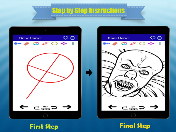 এই সহজ অঙ্কন অ্যাপ্লিকেশনটিতে, আপনি কেবল আঁকবেন না, তবে আপনি বিনামূল্যে অঙ্কনটি রঙ করতে পারেন। আপনার অঙ্কন শেষ করার পরে, আপনি এই অ্যাপ্লিকেশনে রঙিন বৈশিষ্ট্যগুলির সাথে আপনার অঙ্কনটি রঙ করতে সক্ষম হবেন। আপনার হরর চরিত্রের অঙ্কনটি রঙ করার জন্য আপনি প্রচুর রঙ ব্যবহার করতে পারেন। অতএব, এখনই আমাদের নিখরচায় অঙ্কন টিউটোরিয়ালটি ডাউনলোড করুন এবং তারপরে এই পেশাদার হরর অঙ্কন অ্যাপের মাধ্যমে আপনার সৃজনশীলতা প্রকাশ করুন।
