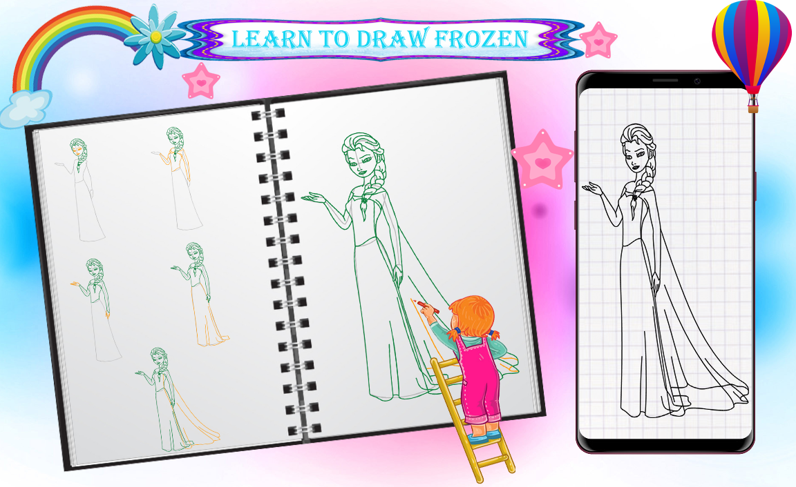 - This app contains dozen of your favorite Princess Frozen Characters drawing pages.