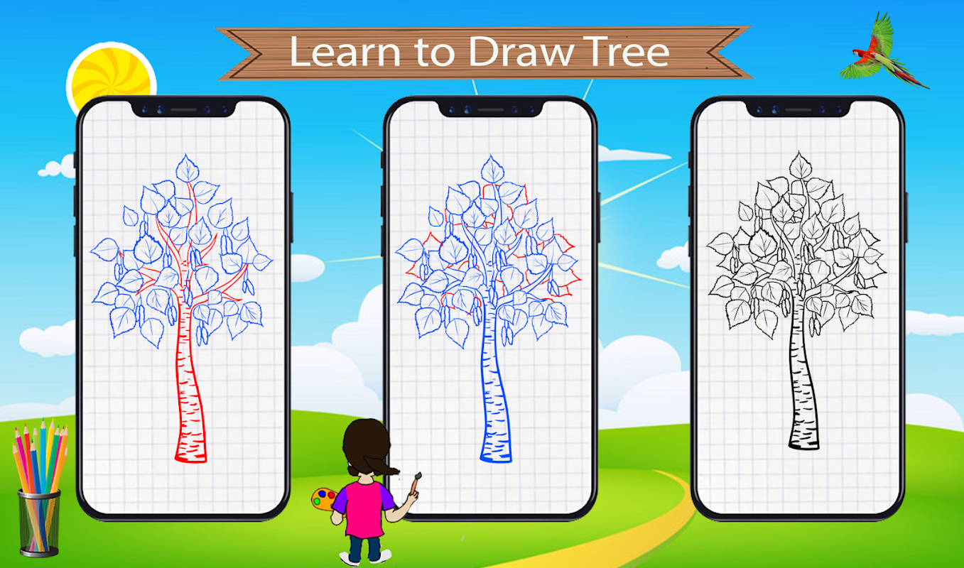 কোন বিশেষ দক্ষতা এবং দ্বিধা ছাড়াই আঁকা শুরু করুন এবং How to Draw Tree অ্যাপ ব্যবহার করে সৃজনশীল হন।
